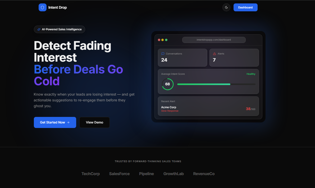 CRMs track what happened. IntentDrop predicts what's about to happen.